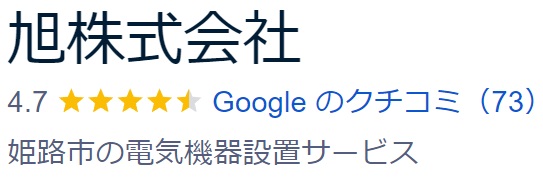 弊社は電気機器設置のプロとして姫路や高砂を中心に営業しており、Googleのクチコミでは評価4.7を頂いております。(2025年1月15日時点)