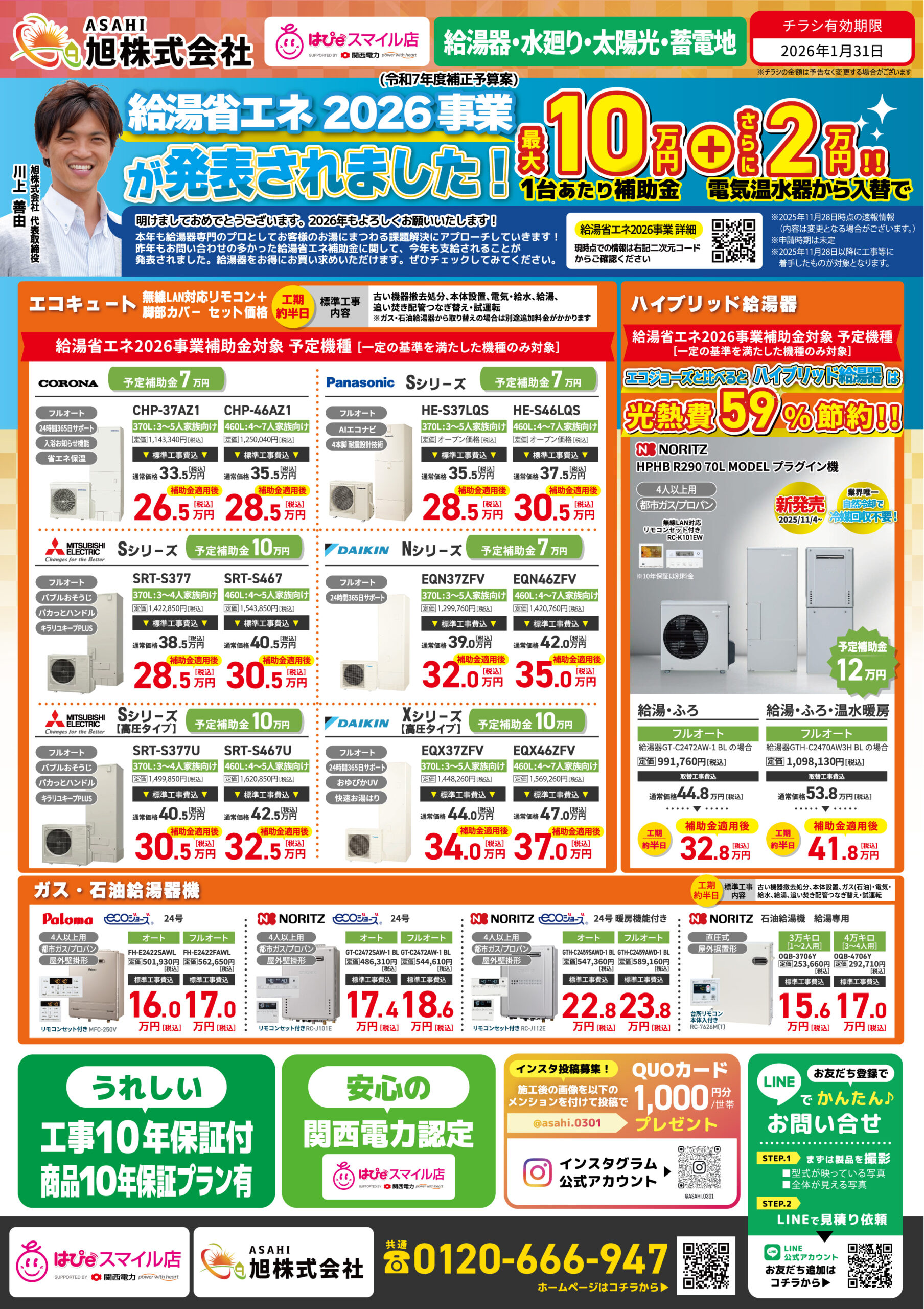 最大10万円+電気温水器からの入れ替えでさらに2万円の補助です!!
